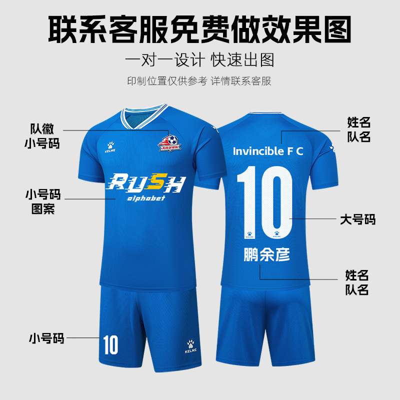 KELME卡尔美足球服定制球衣队服夏季短袖套装男运动训练比赛官方