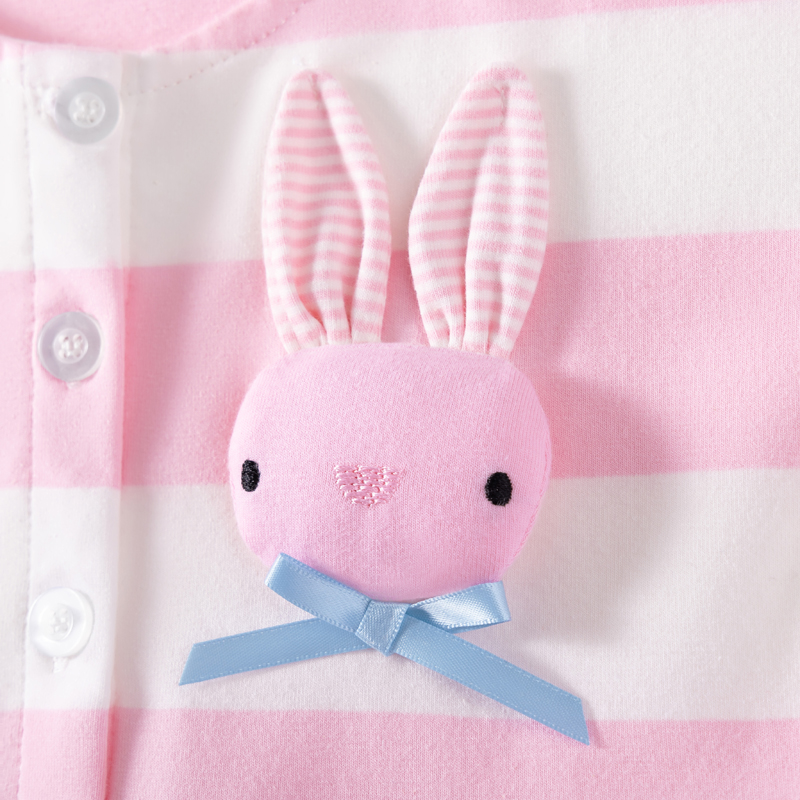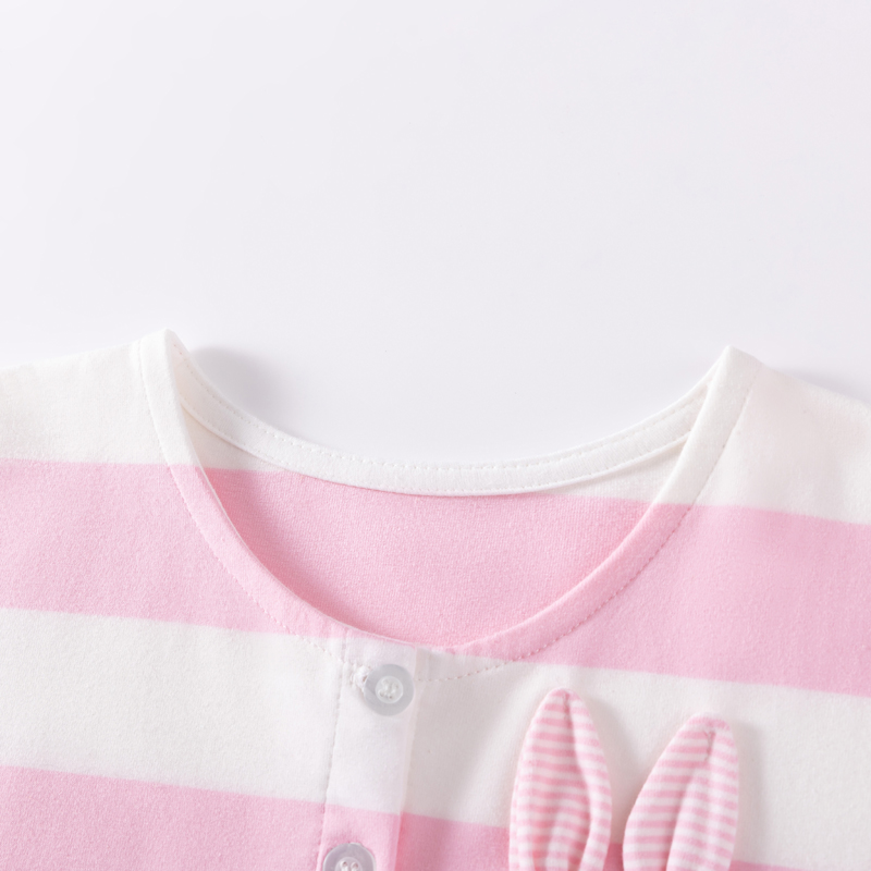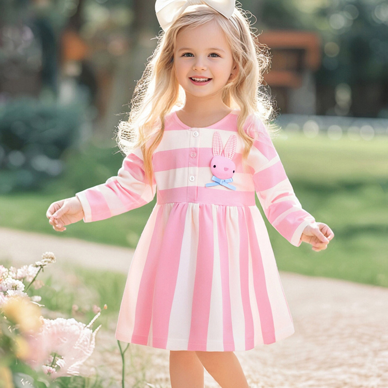 女童粉红色条纹长袖连衣裙宝宝纯棉春秋装儿童小兔公主裙女孩裙子