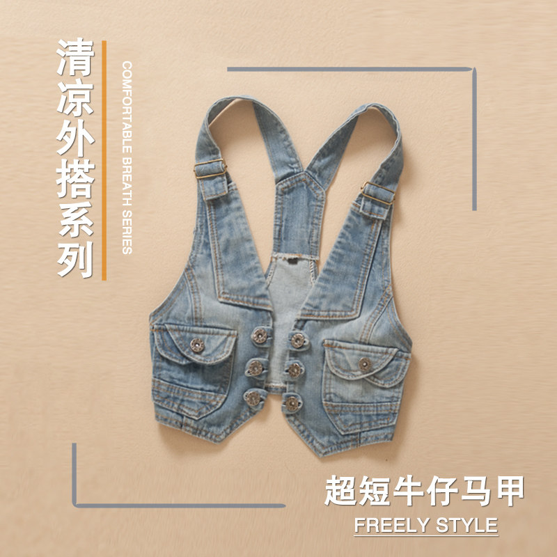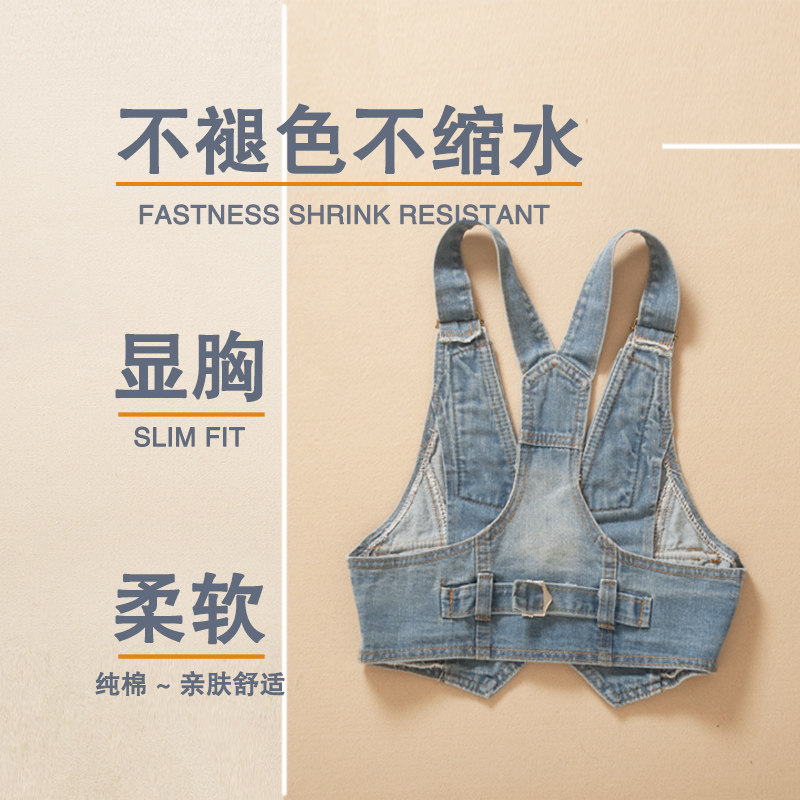 短款挂脖坎肩外套束腰牛仔小马甲