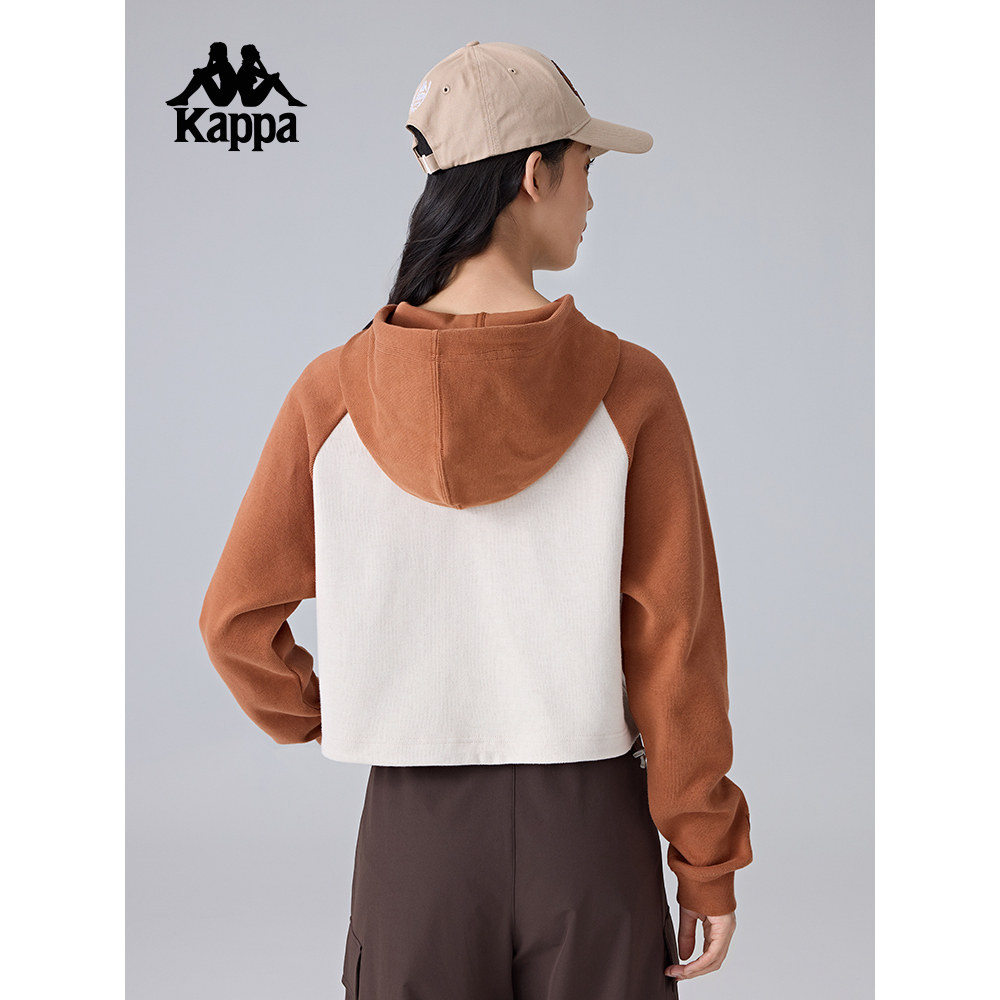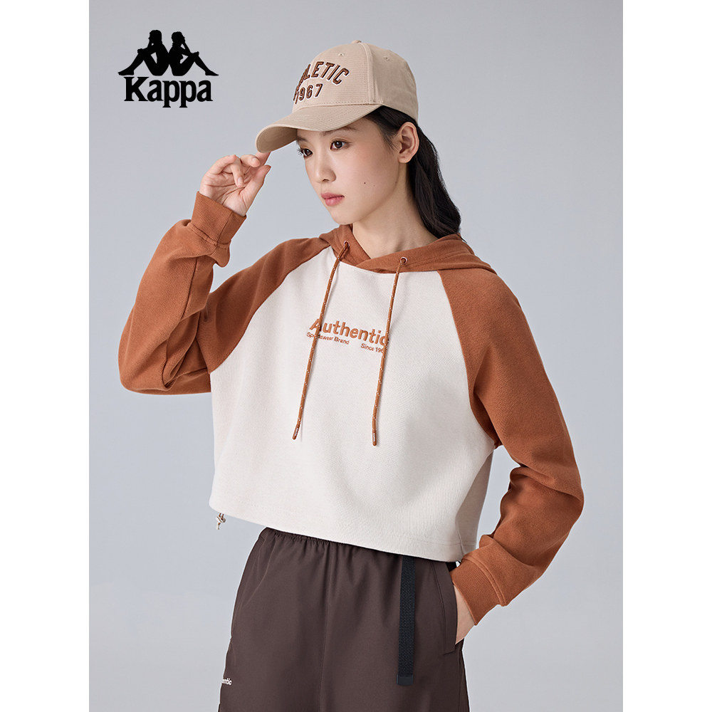 Kappa卡帕背靠背运动卫衣女新款休闲简约百搭连帽套头衫短款上衣