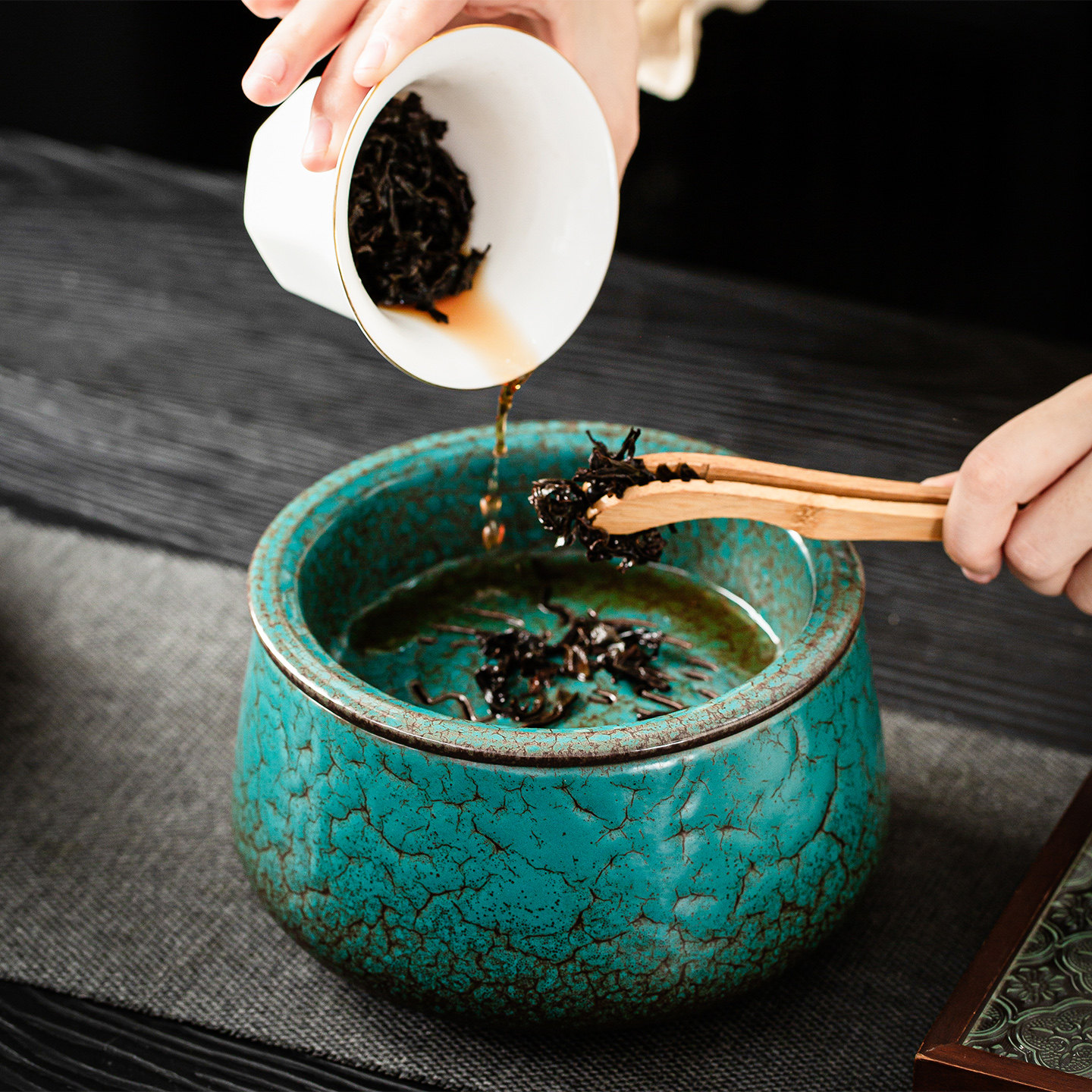 带盖茶渣缸特大号茶洗缸茶水废水缸陶瓷洗茶具盆倒茶水盅茶钵建水