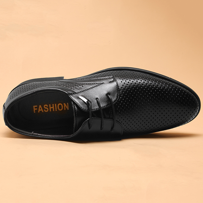 夏季凉皮鞋男士透气薄款镂空青年休闲鞋商务正装洞洞防臭男鞋