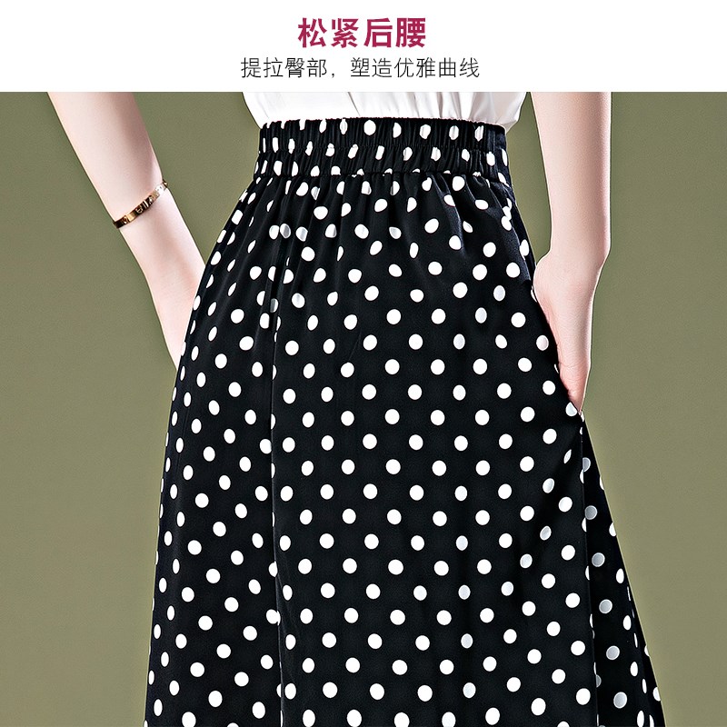 雪纺波点裙裤女夏季2023新款薄款宽松休闲五分裤七分裤六分阔腿裤