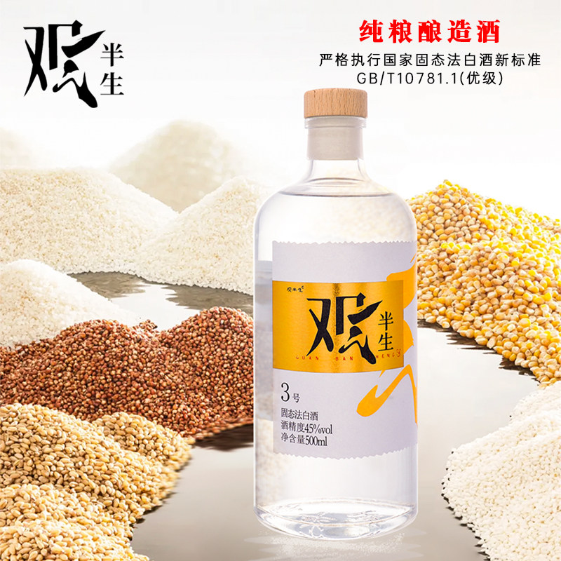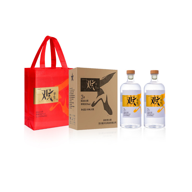 观半生3号酒川派五粮浓香型固态法纯粮食白酒45度500ml*2瓶箱装