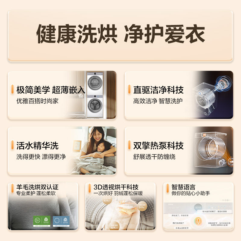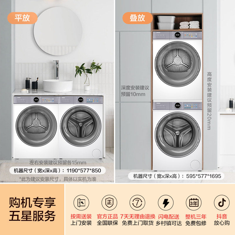 【云溪4.0】海尔滚筒洗衣机热泵烘干机77E洗烘套装直驱官方旗舰店