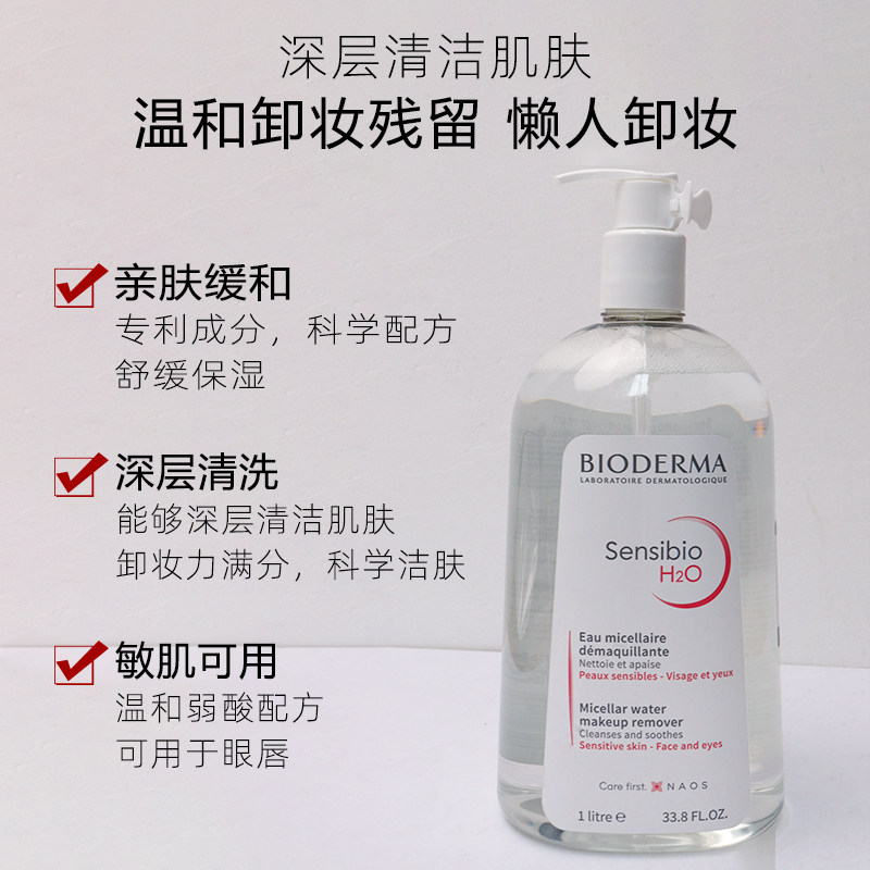 贝德玛卸妆水敏感肌温和深层清洁粉水眼唇可用安全卸妆无酒精1L