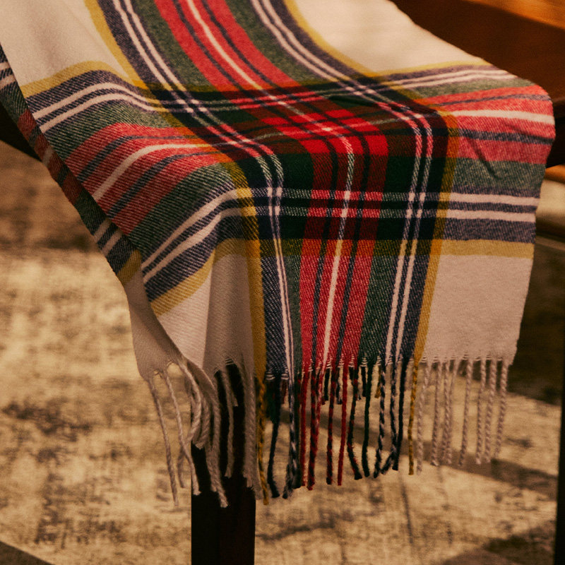 平圆方中 英伦红绿格子围巾男士秋冬季加厚保暖百搭格子条纹围脖