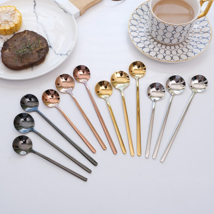 韩式ins304不锈钢金色咖啡搅拌勺燕窝小勺子蜂蜜酸奶汤勺甜品圆勺
