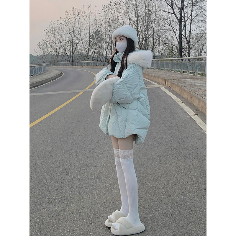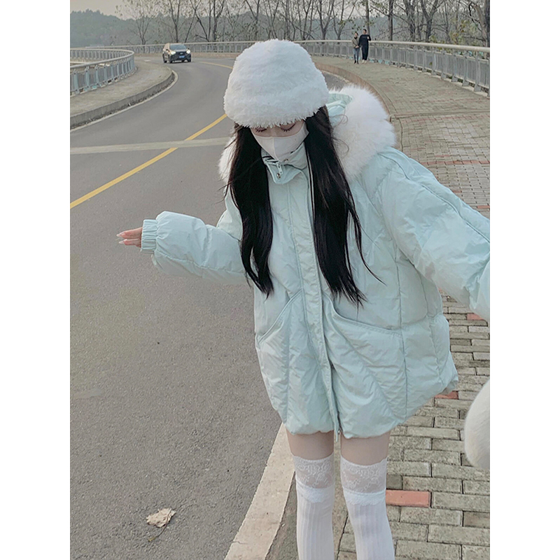 300斤大码胖mm韩系蓝绿色棉服女小个子韩系减龄面包服冬季外套潮