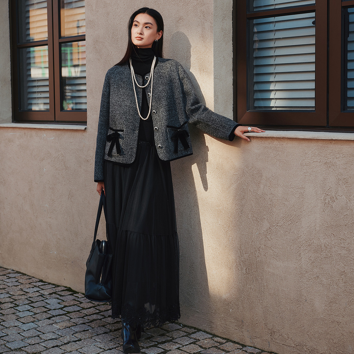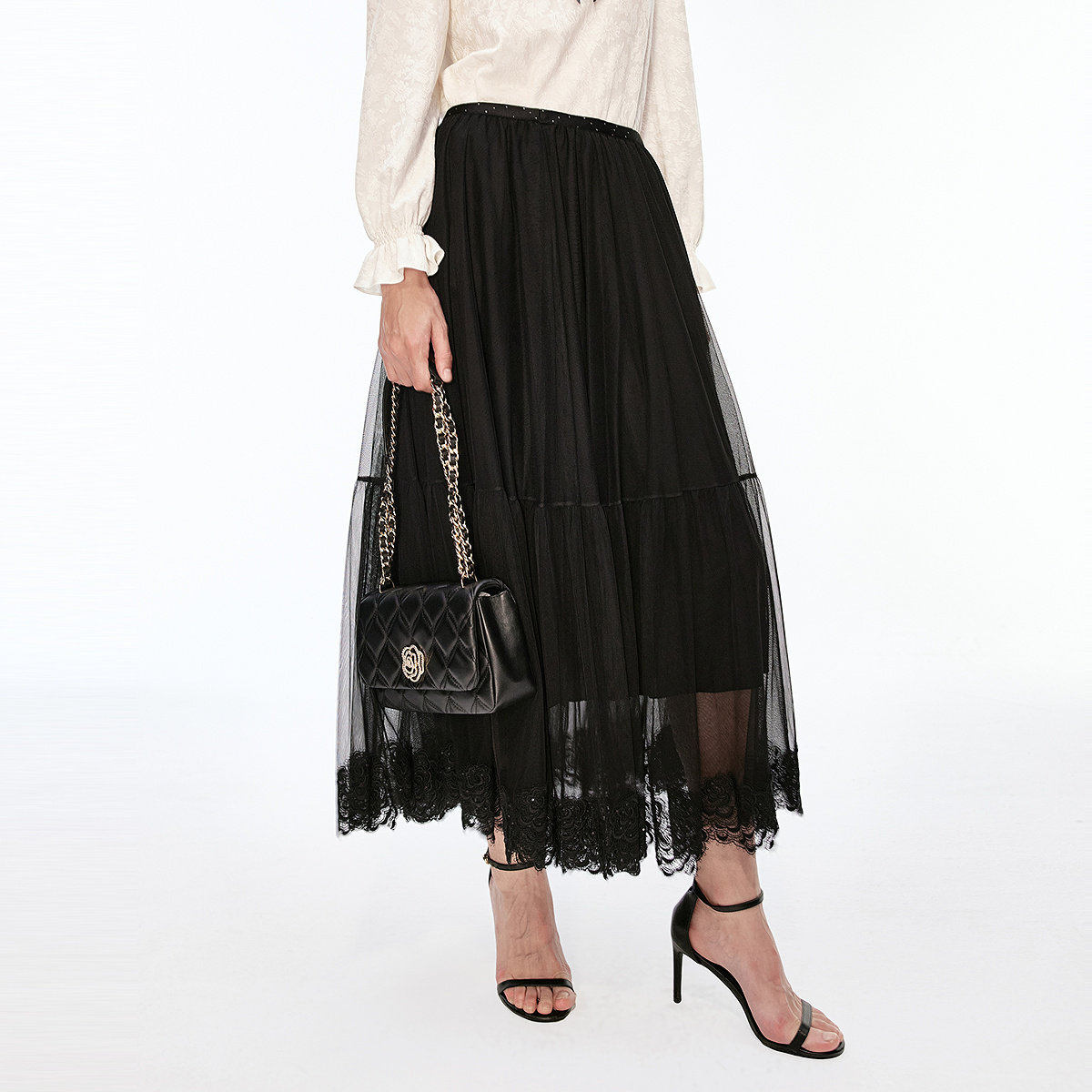 Koradior珂莱蒂尔商场同款2025秋新款气质优雅黑色网纱半身裙女裙