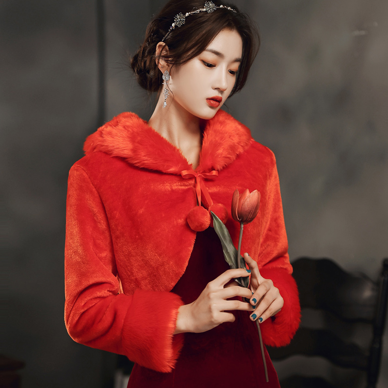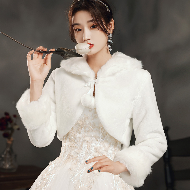 婚纱披肩冬新娘结婚礼白色伴娘服晚礼服春秋季外套长袖外披斗篷毛