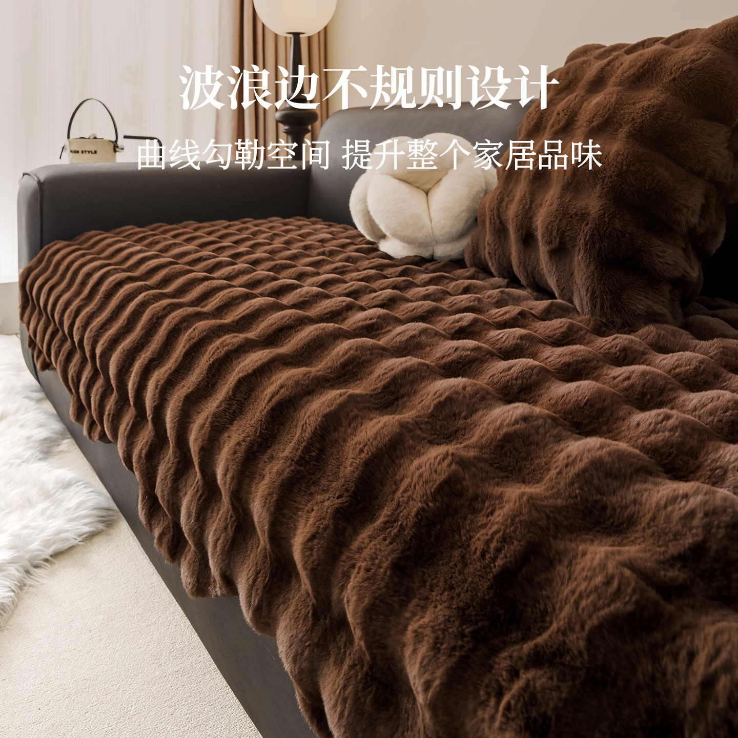 异形轻奢高级感兔毛绒沙发垫2025冬季新款加厚固定防滑沙发坐垫子