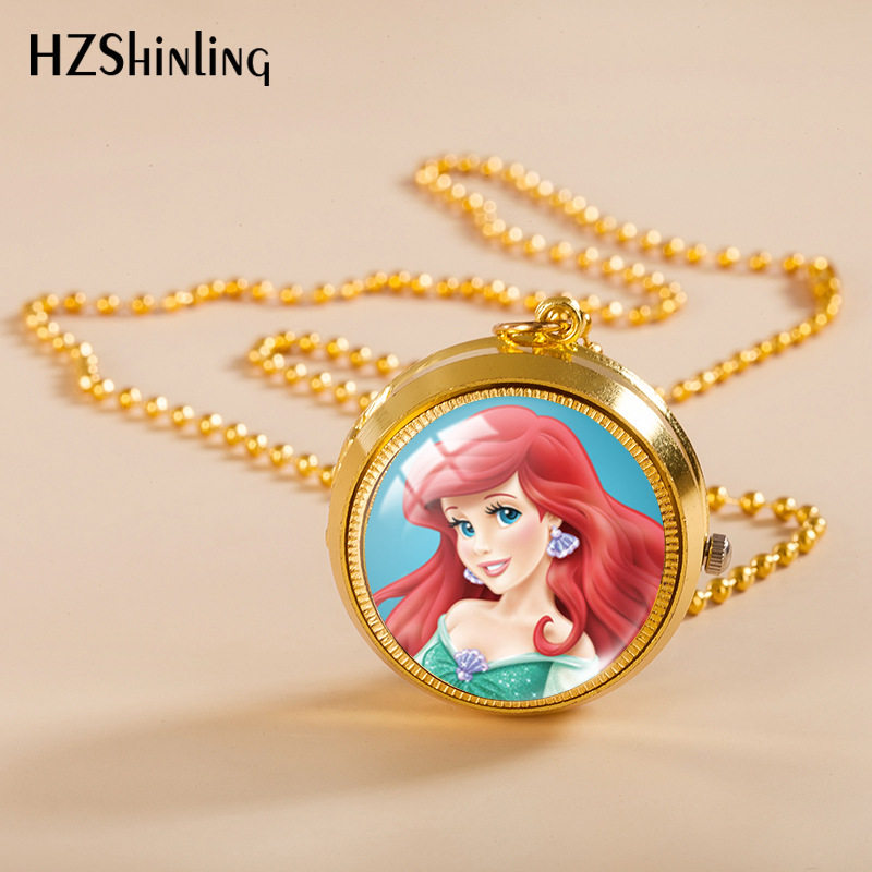 迪士尼公主旋转怀表可爱美人鱼蒂安娜睡美人学生儿童转动翻盖项链