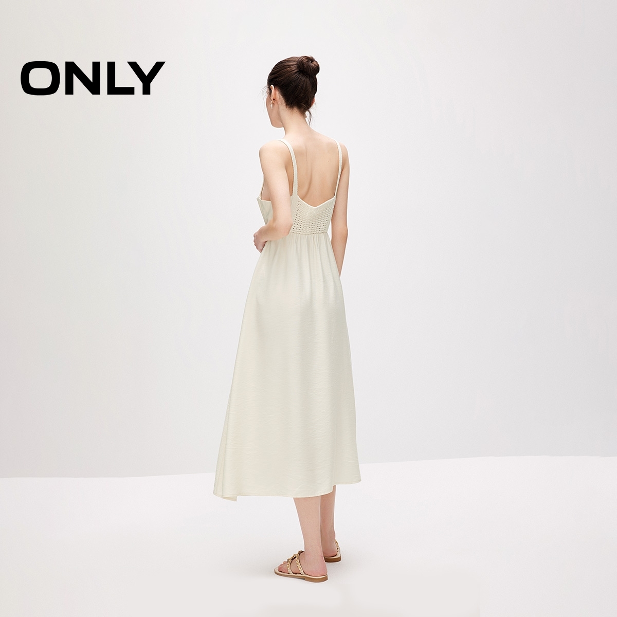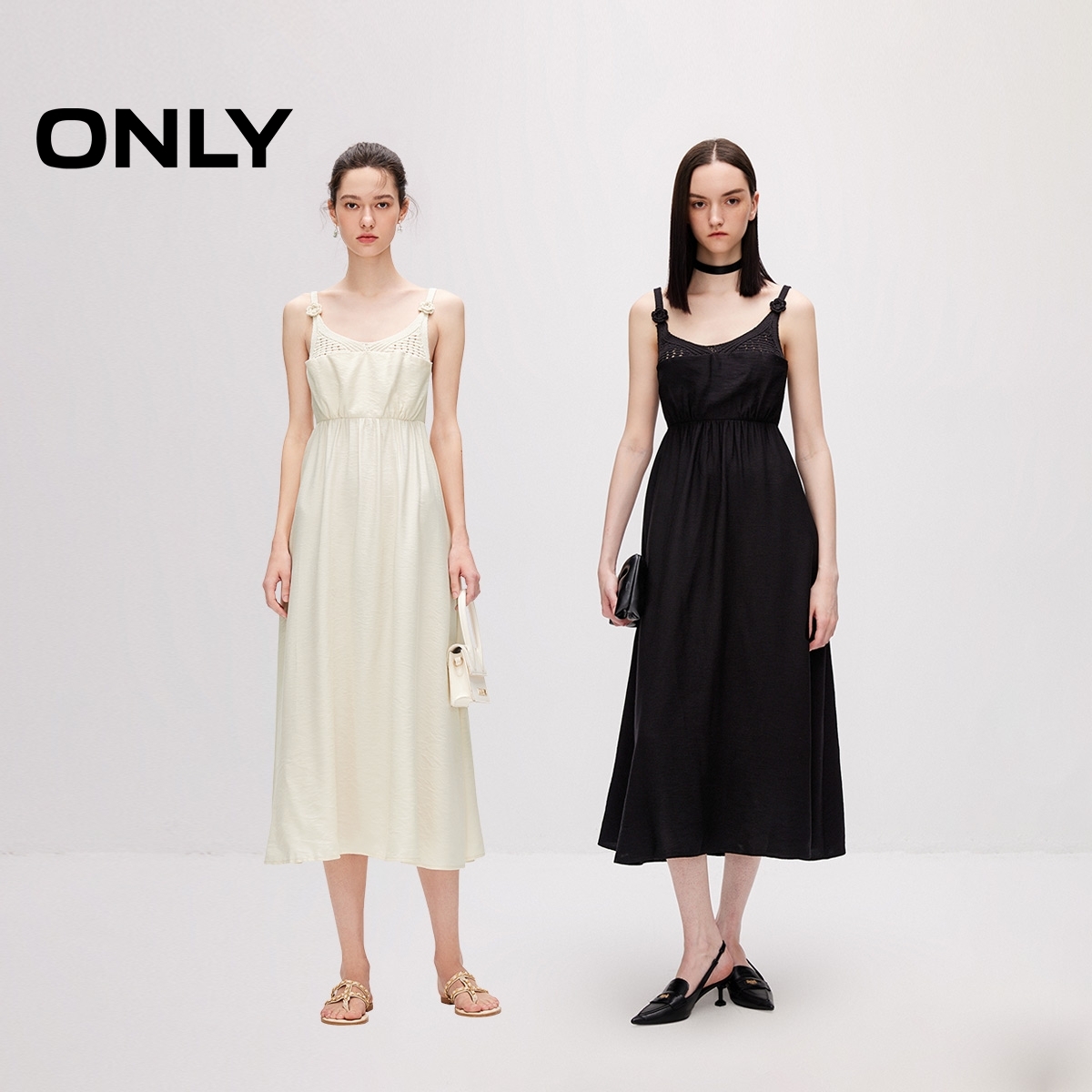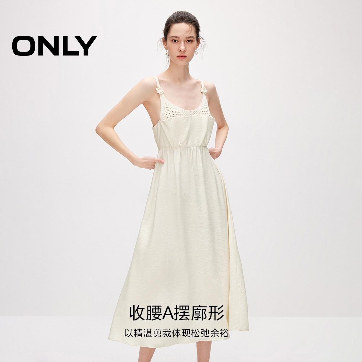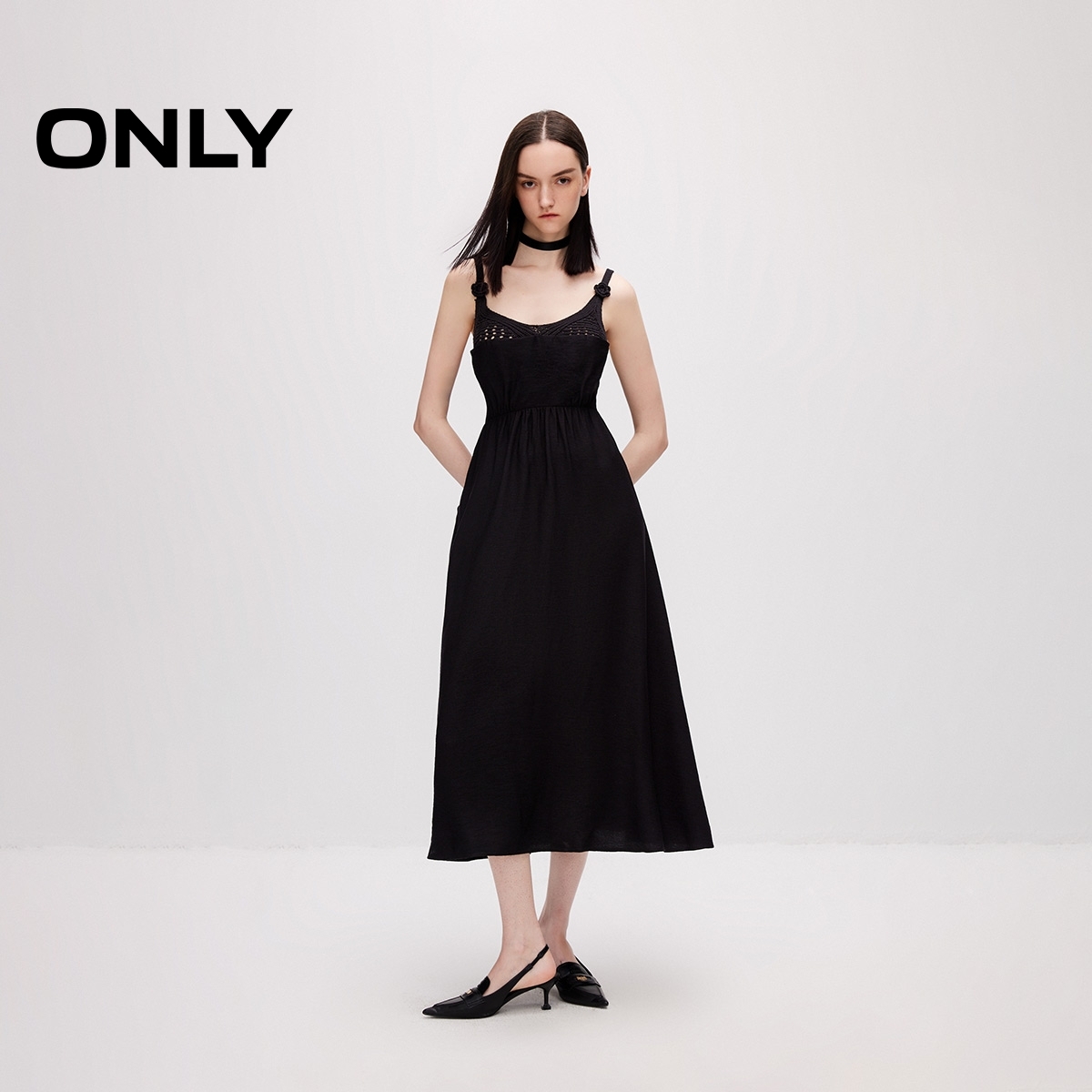 ONLY收腰V领吊带中长裙连衣裙