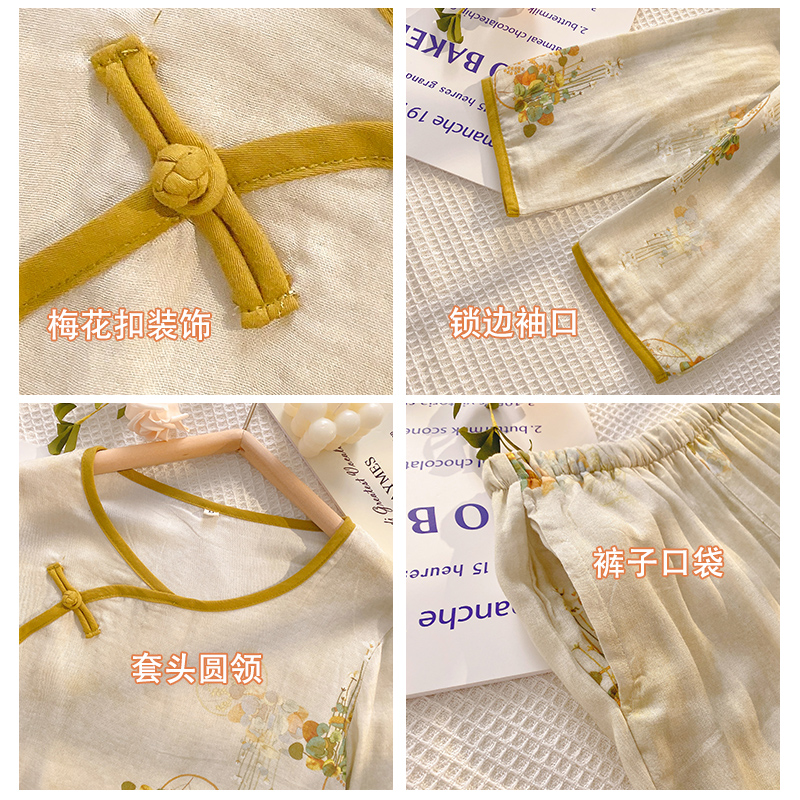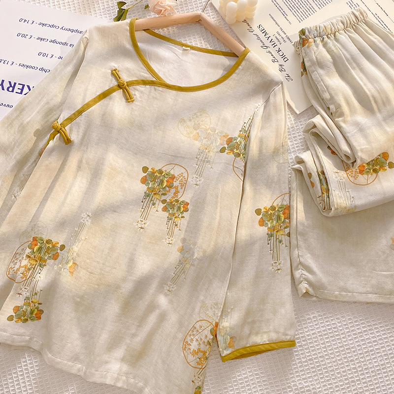 中国风睡裙女高档棉绸纯棉家居服春秋季旗袍睡衣长裙女人味可外穿