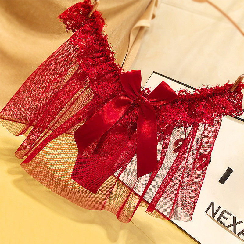 蕾丝内裤女少女丁字裤性感火辣诱惑网纱透气无痕T字三角黑色纯色