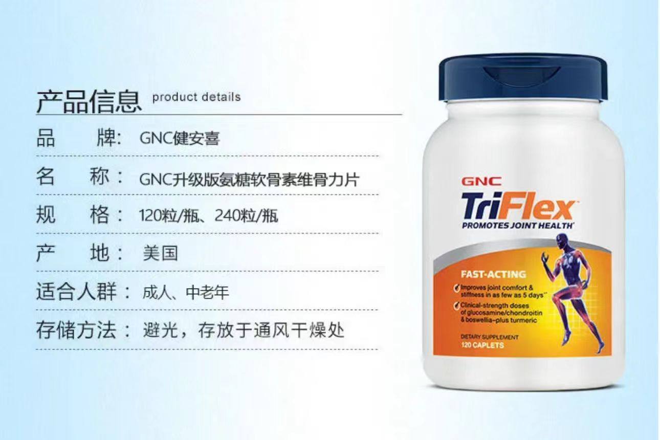 美国GNC健安喜快速维骨力triflex加强版氨糖软骨素润滑关节 120粒