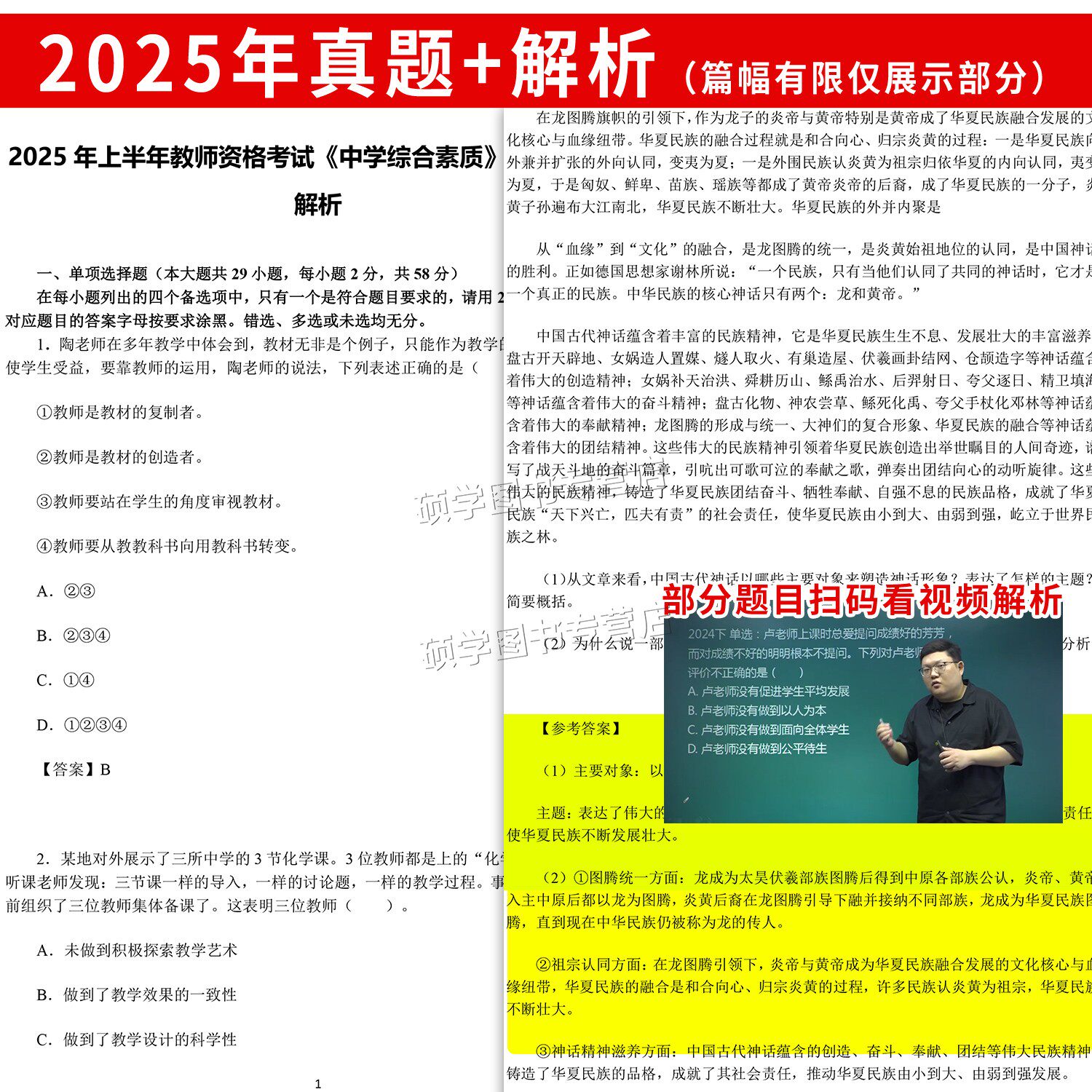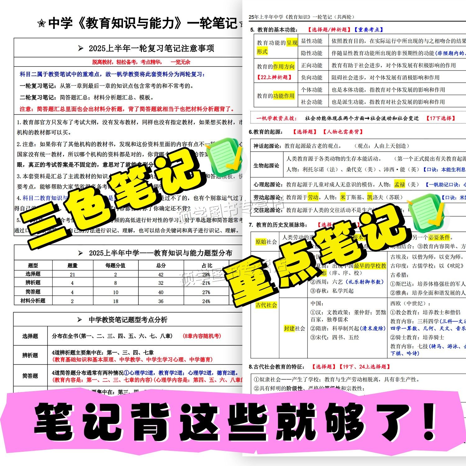 【永久免费更新】2026上中小学教师资格证历年真题电子版复习资料考点科目一二三初中高中教资答题模版语文思维导图预测题教资试卷
