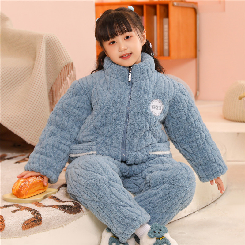 冬季女童睡衣夹棉加厚法兰绒保暖珊瑚绒男女宝宝特厚装家居服儿童