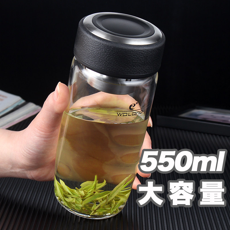 卧龙水杯子大容量单层玻璃杯男女加厚便携透明耐热玻璃茶杯鹅蛋杯