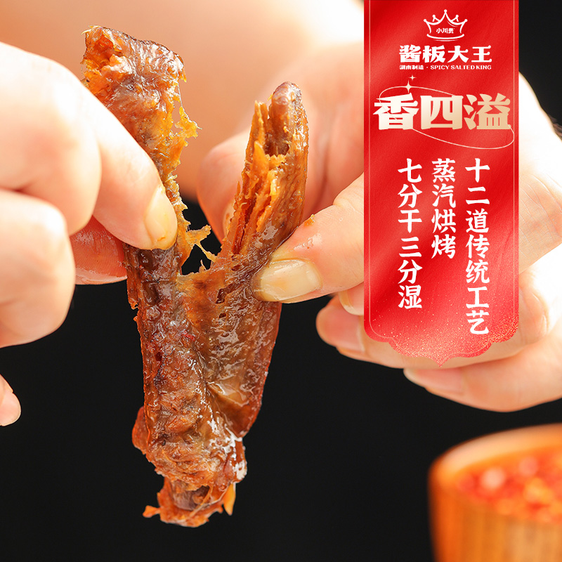 小川贵酱板鸭翅湖南特产香辣鸭肉风干特辣手撕鸭卤味熟食零食小吃