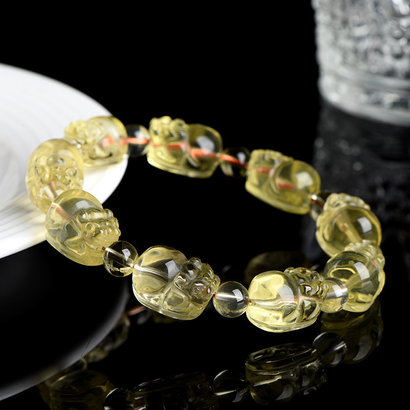 天然黄水晶貔貅手链高能量招财手串女情侣本命年礼物转运珠饰品
