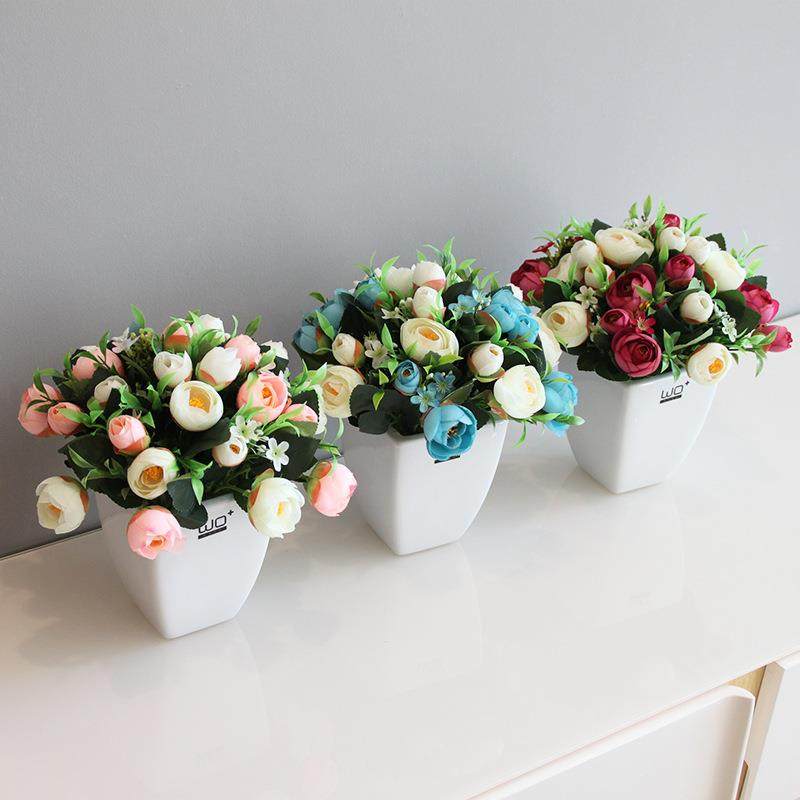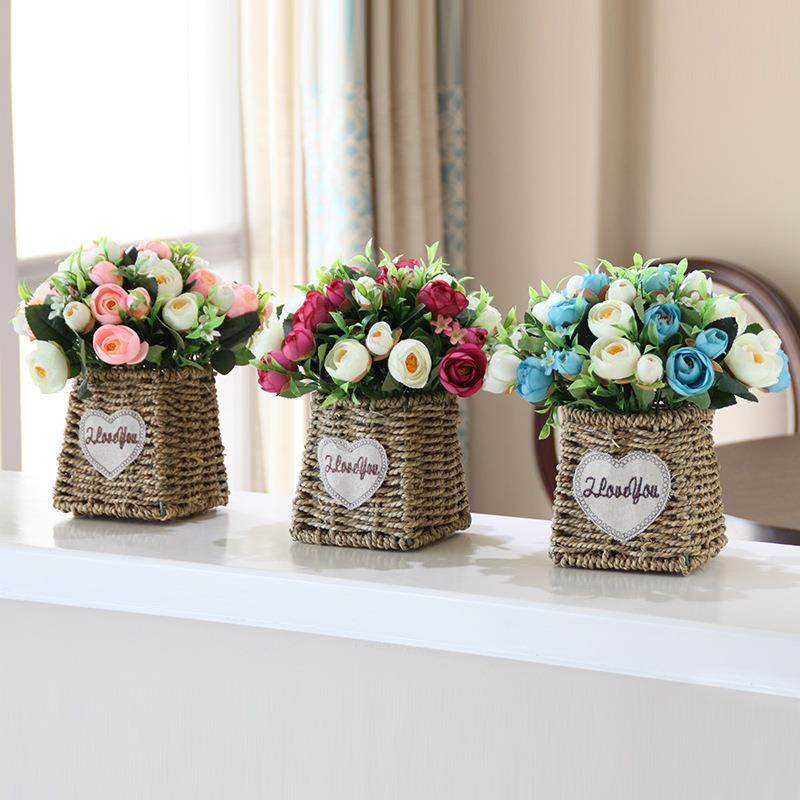 仿真仿真花茶玫瑰花苞盆栽假花套装花艺田园餐桌居家装饰欧式花燕