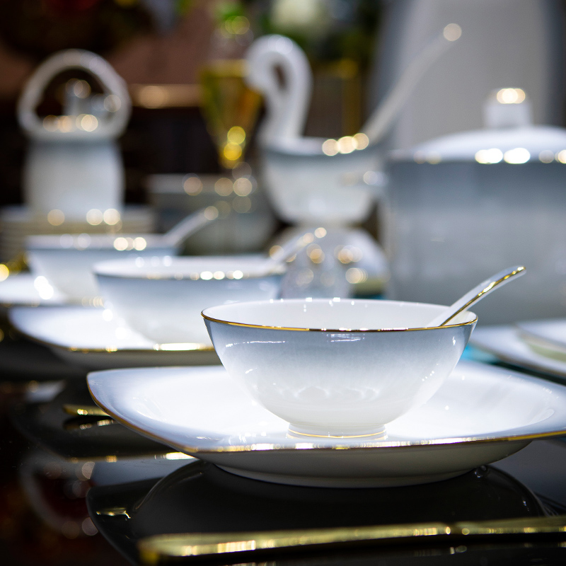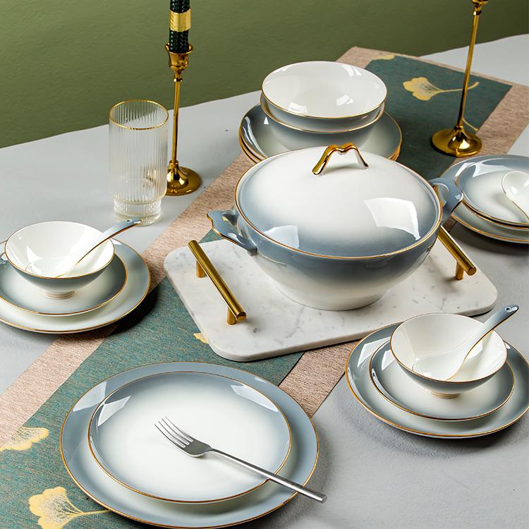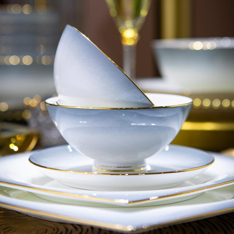 碗碟套装家用现代2025新款景德镇高温陶瓷高级盘子碗组合乔迁餐具
