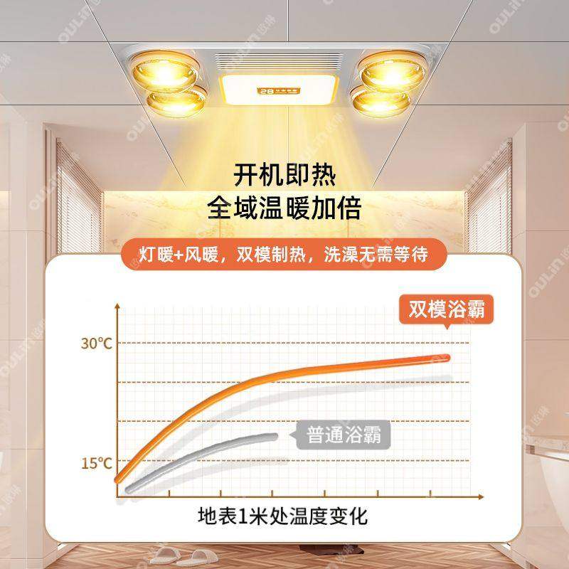 欧琳浴霸灯化妆室取暖集成吊顶300x600灯暖浴霸防爆速热浴室洗澡