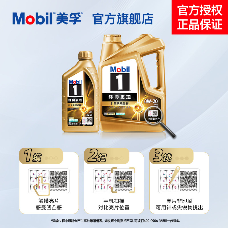 官方旗舰Mobil美孚1号经典表现金美孚0W-20 4L+1L 先进全合成机油