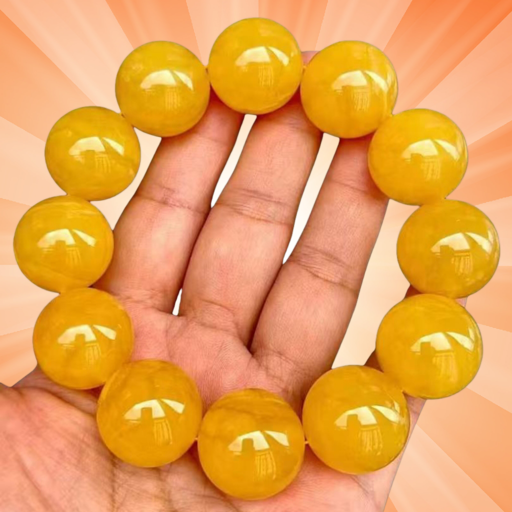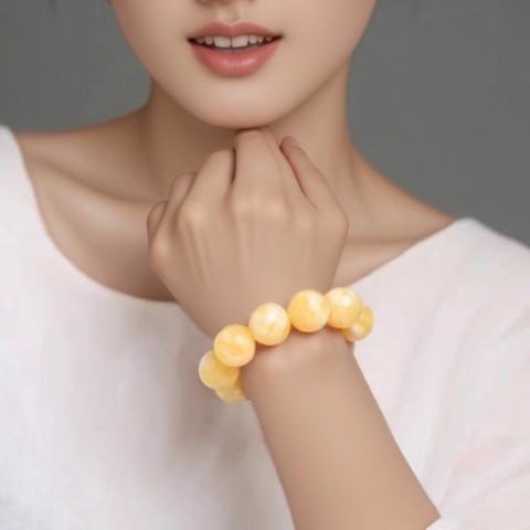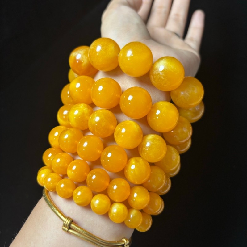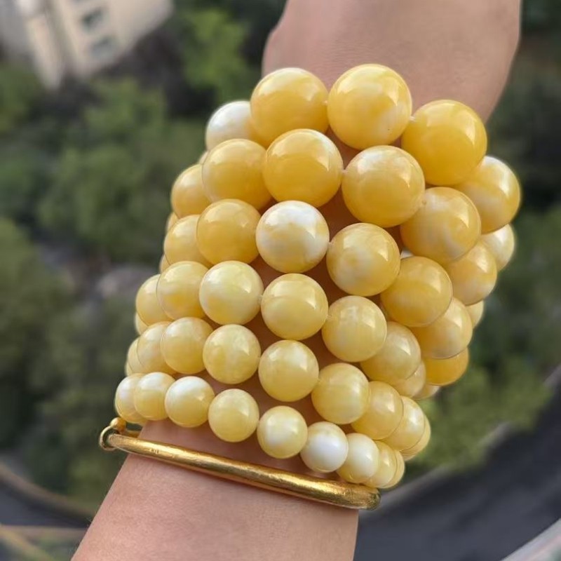 天然蜜蜡手链白花蜜飘妖花手串单圈圆珠琥珀男女款俄料鸡油黄佛珠