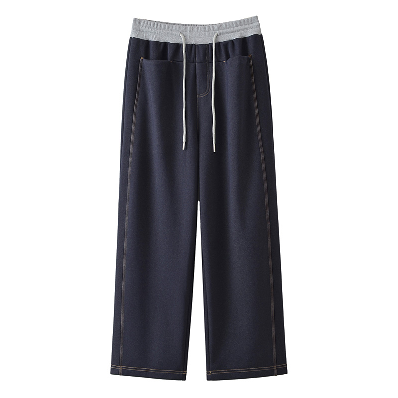 秋冬女装韩版新款休闲裤大码胖mm设计感松紧腰抽绳加绒牛仔直筒裤