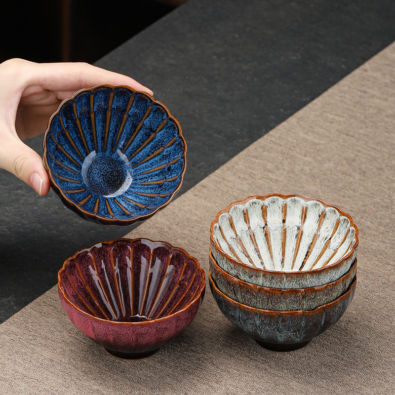 窑变单杯花瓣杯建盏茶杯主人杯功夫茶具茶盏茶杯陶瓷钧窑品茗杯