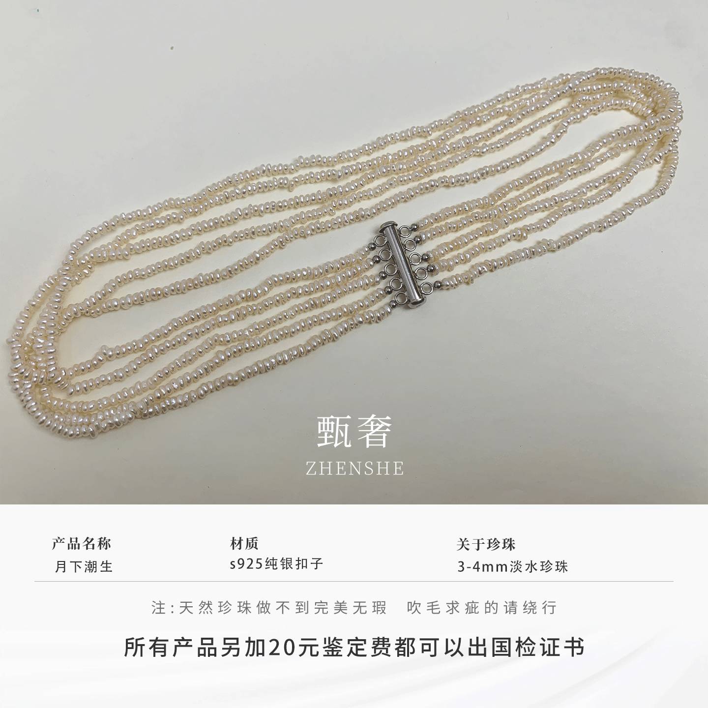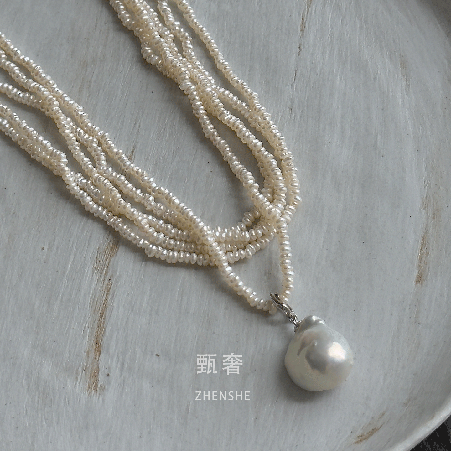 《月下潮生》复古潮流中古风多层天然淡水keshi无核珍珠项链纯银