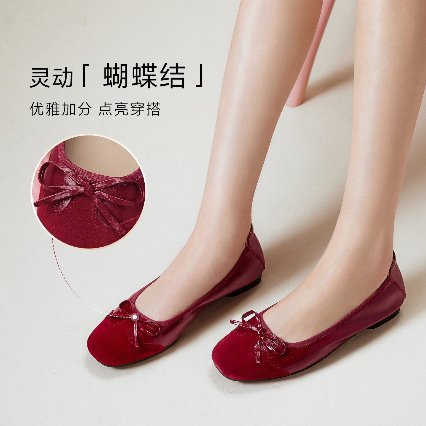 百思图2025秋季新款单鞋时尚蝴蝶结简约通勤女鞋C2201CQ5