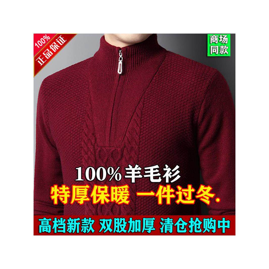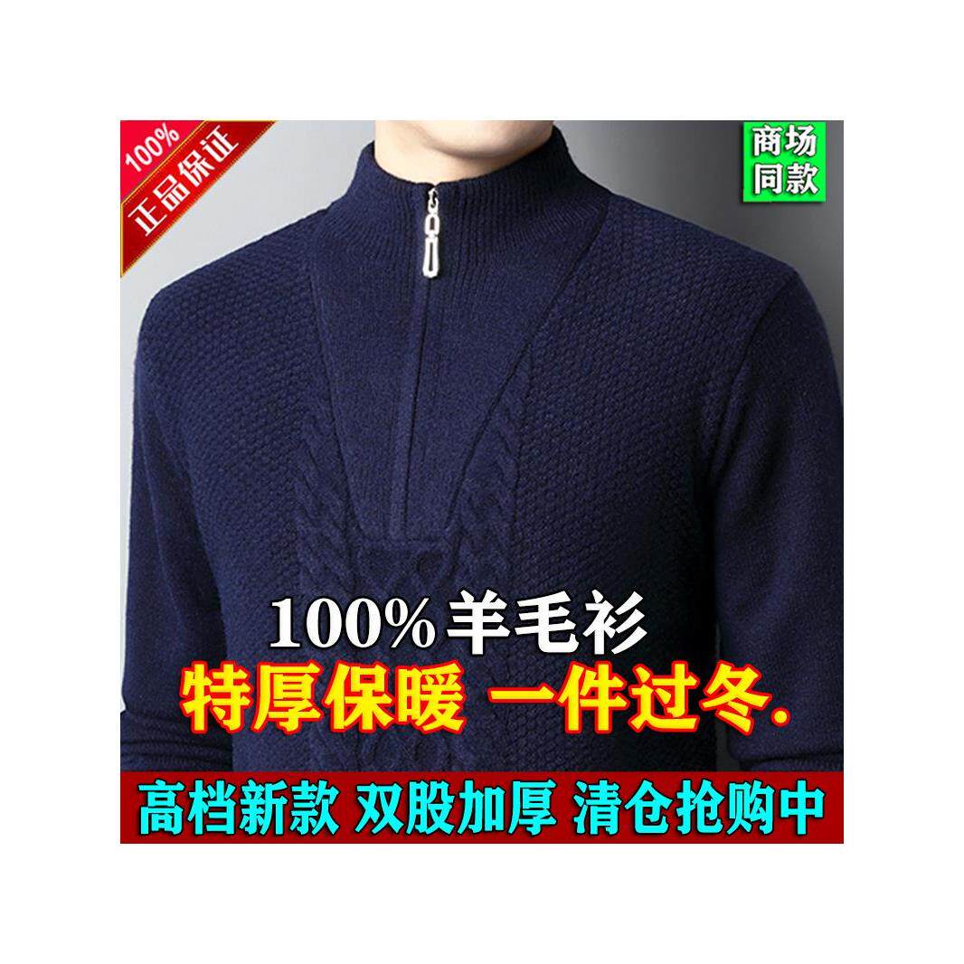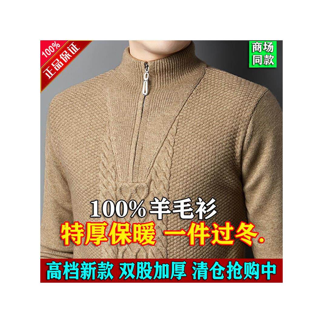 冬季鄂尔多斯市产高档特厚羊毛衫男士拉链半高领加厚针织保暖毛衣