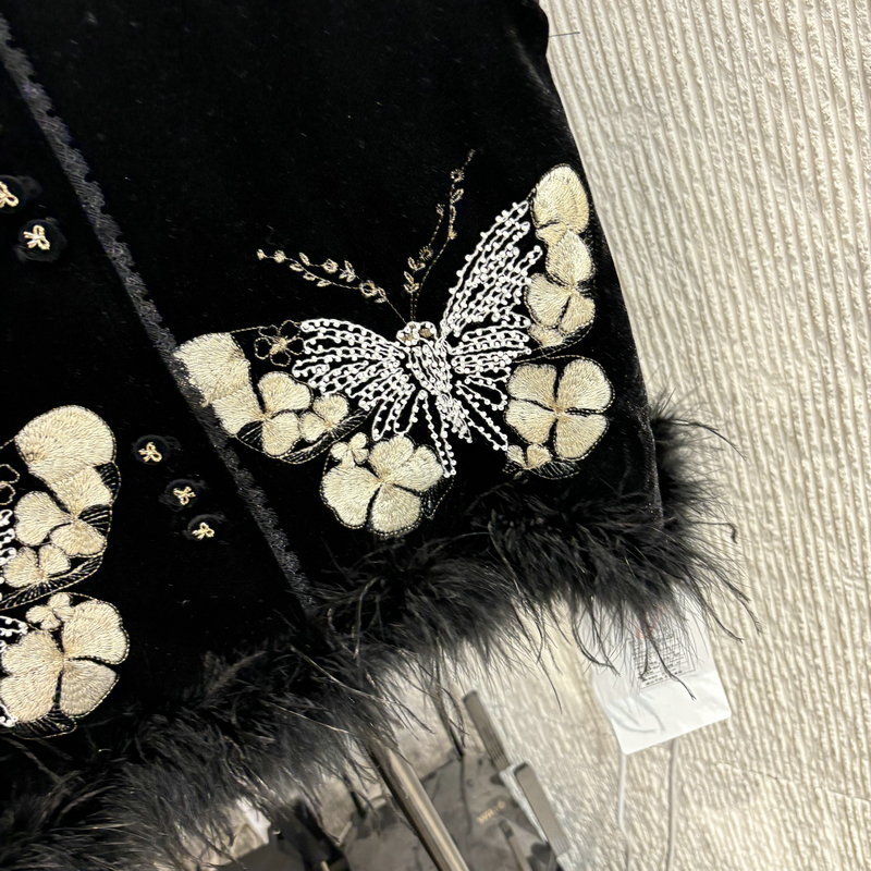 新中式国风设计感丝绒蝴蝶刺绣钉珠洋气无袖背心毛毛马甲女装上衣
