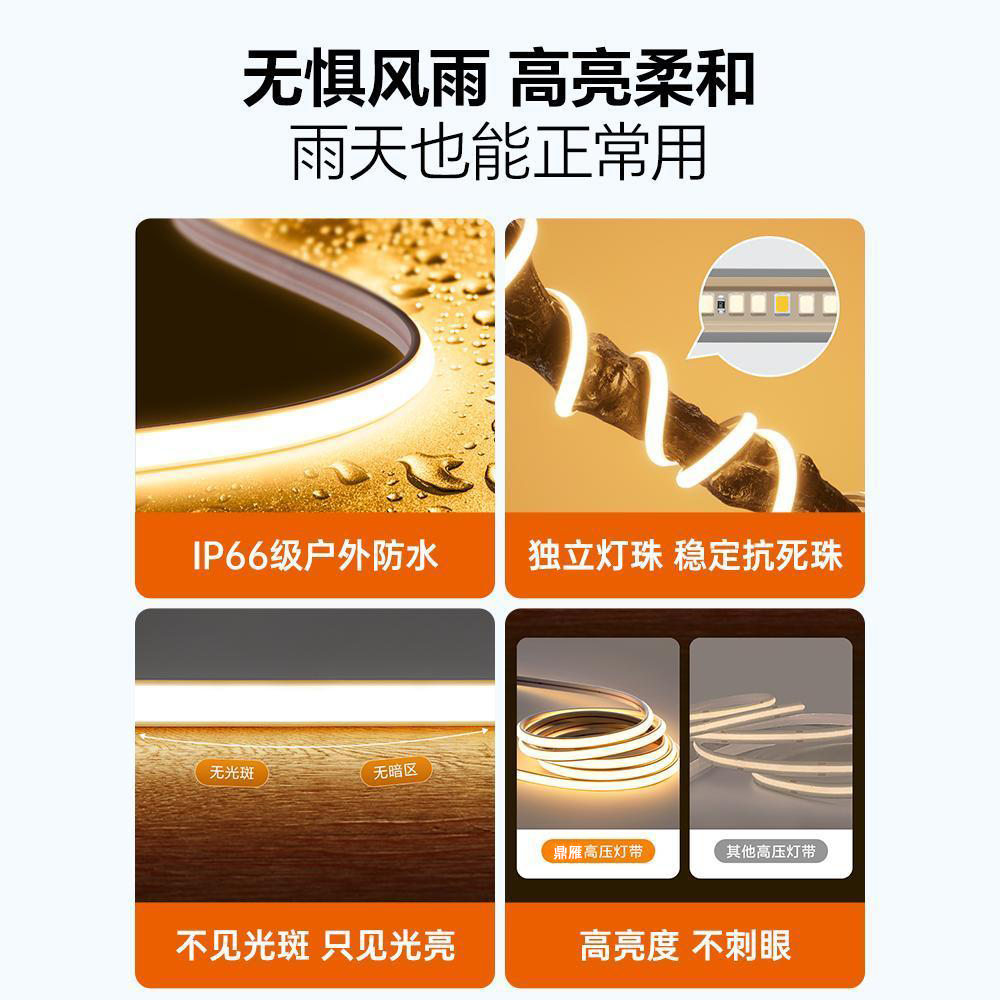 鼎雁COB灯带自粘led灯条220v防水超亮灯槽客厅吊顶户外明装氛围