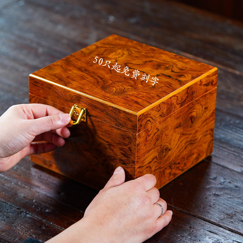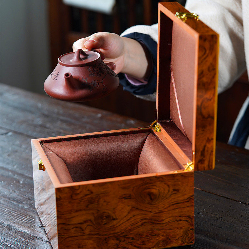 高档木纹礼品盒紫砂壶建盏茶杯茶壶收纳锦盒主人杯单杯包装盒包邮