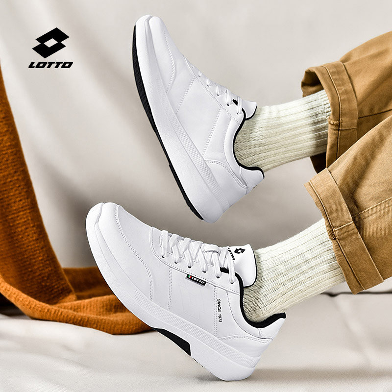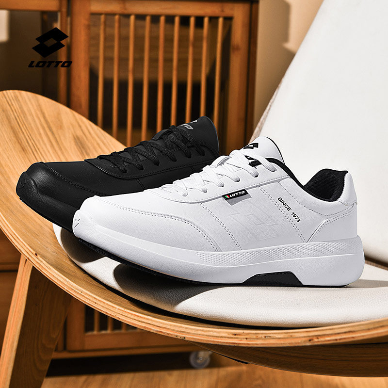乐途男鞋皮面运动鞋2025冬季新款防水休闲鞋青少年全黑软底通勤鞋