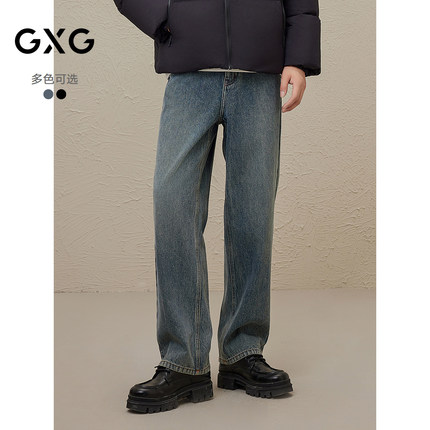 GXG男装双色直筒水洗牛仔裤2024夏季款#G24D052032