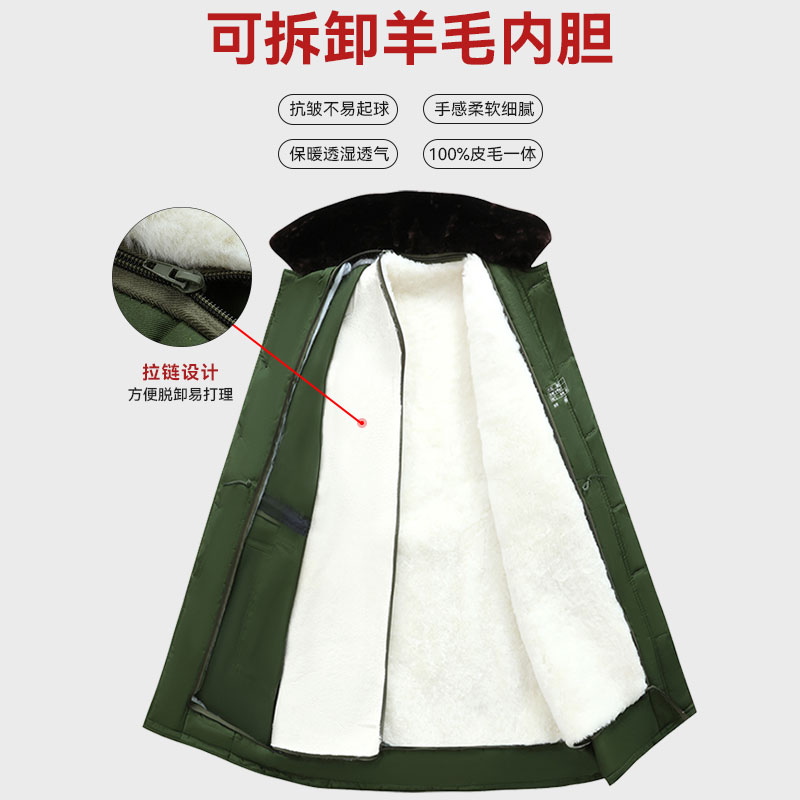 羊皮军棉大衣男皮毛一体冬季长款防寒东北老式劳保加厚羊毛羊皮袄