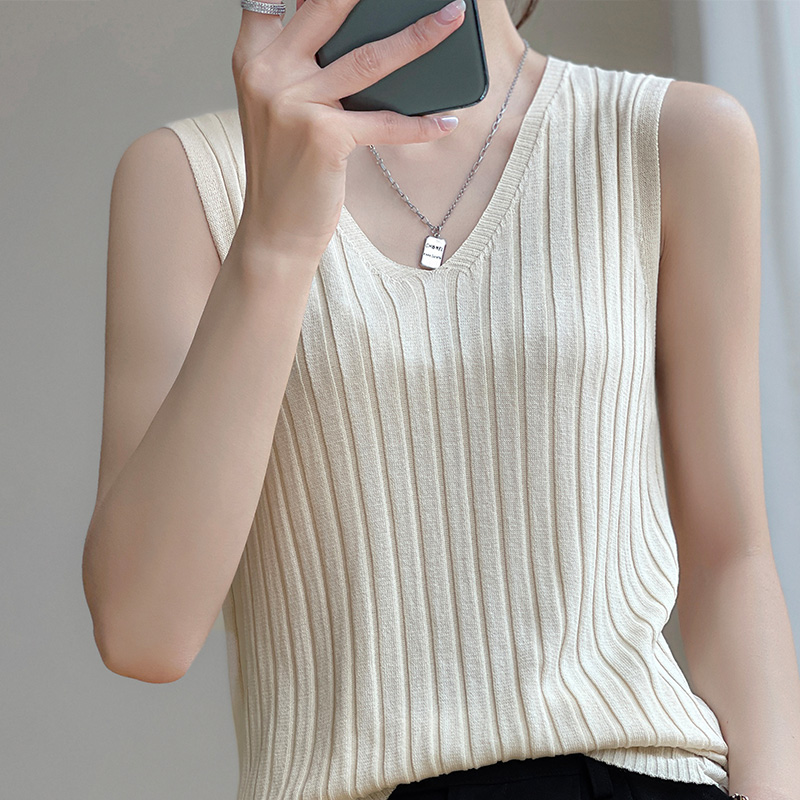 冰丝针织衫女背心韩版新款女装v领暗纹理套头洋气打底衫吊带内搭