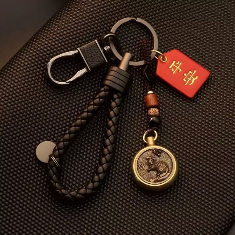 男式汽车钥匙扣高端精致黄铜十二生肖高级感中国风女士防丢挂件链