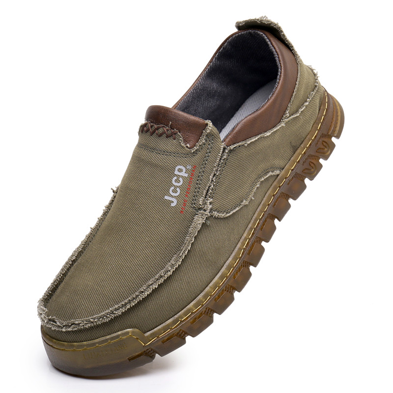 老北京布鞋春秋轻便爸爸防滑牛筋软底休闲帆布懒人一脚蹬肥脚 男