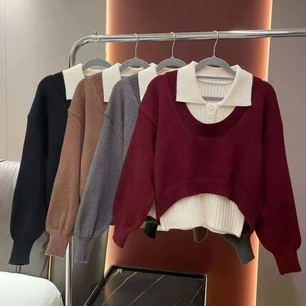 2025早秋新套装韩系穿搭学院风两件套针织衫polo领上衣毛衣慵懒风