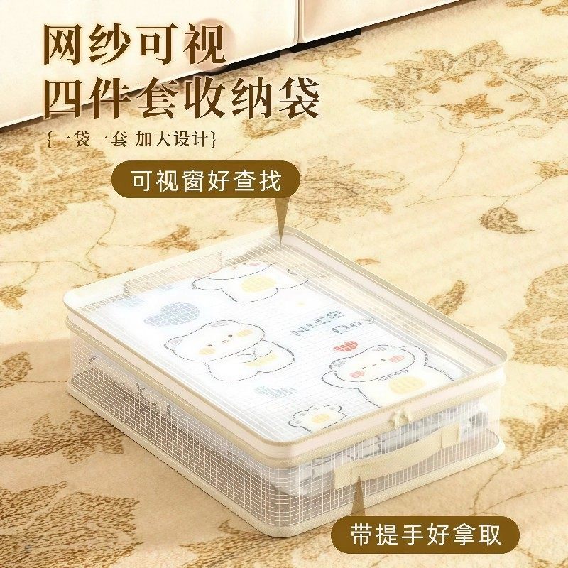 网纱四件套收纳袋换季衣服衣物整理袋衣柜棉被防尘分格带提手储物