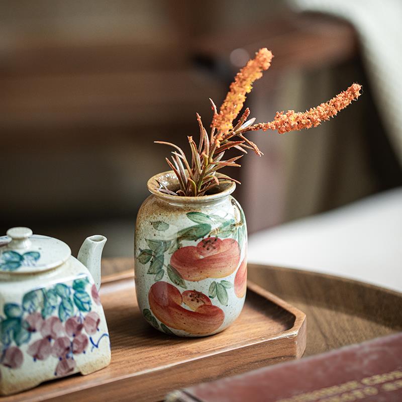 巷子尾〖古风手绘小花瓶〗新中式迷你陶瓷花瓶覆古粗陶茶室小摆件