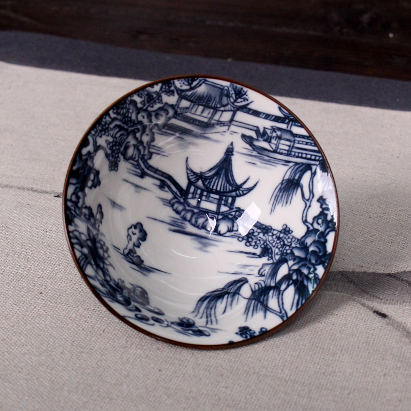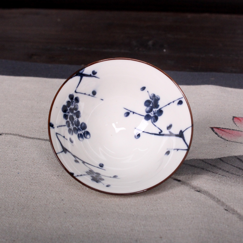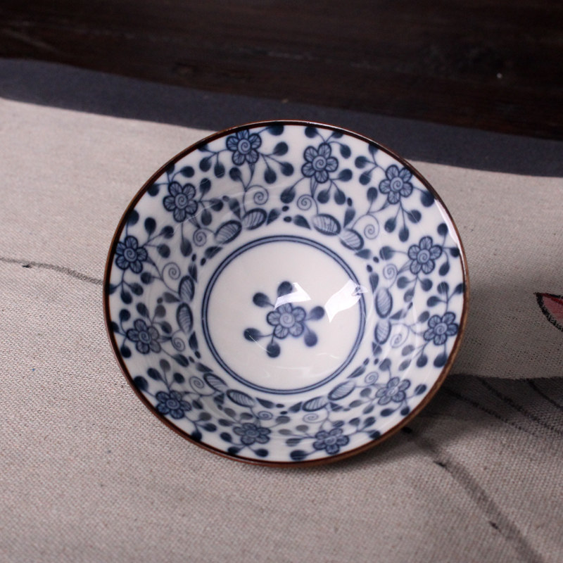 青花瓷陶瓷斗笠景德镇功夫茶杯日式主人品茗普洱茶杯个人单杯茶具