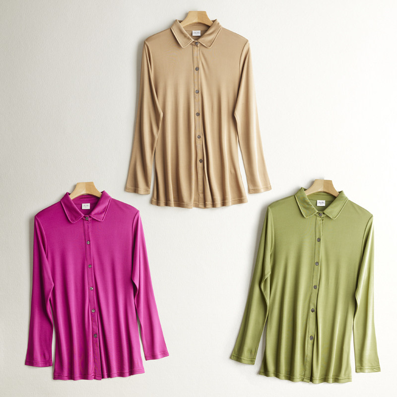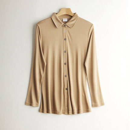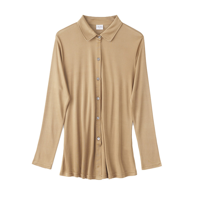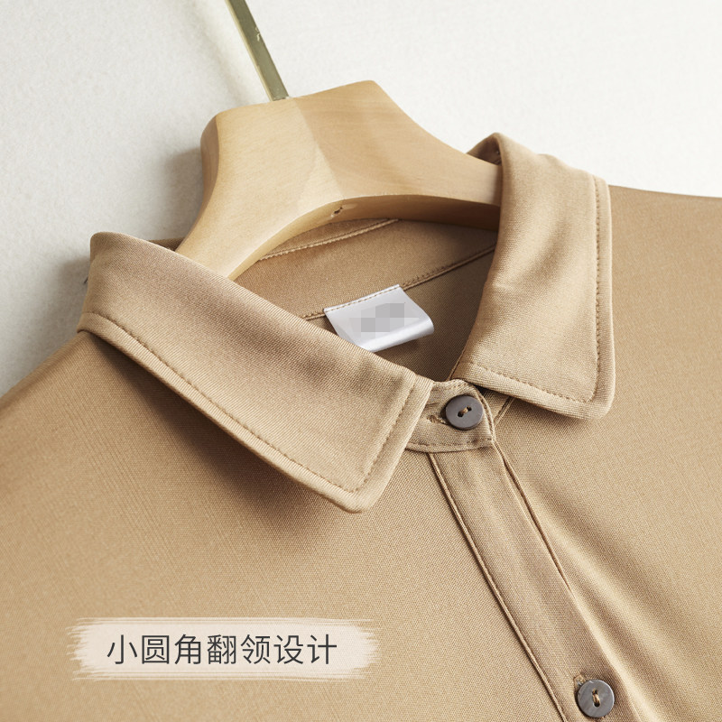 针织真丝翻领衬衫女百搭春秋单排扣打底衫大码纯色桑蚕丝长袖上衣